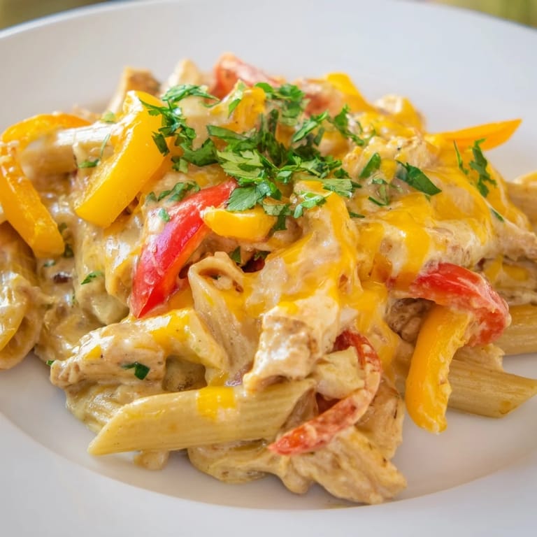 Save to Pinterest There was a Tuesday last fall when I had exactly one skillet clean and a fridge full of peppers that needed saving. I grabbed some chicken, dug out my fajita spices, and threw in pasta because rice felt like too much work. What came out of that pan was smoky, creamy, and gone in minutes. My husband looked up mid-bite and said, this is the kind of dinner that makes Tuesdays better. I've been making it ever since.