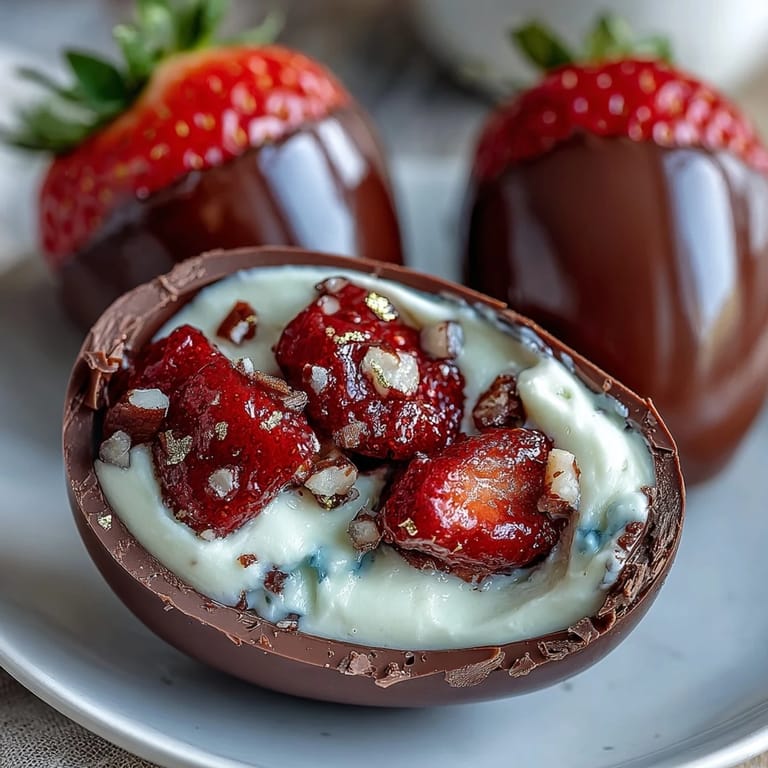Save to Pinterest This recipe masterfully combines luxurious ingredients to create a dessert that's both elegant and approachable. The gentle strawberry infusion in the white chocolate shell pairs perfectly with the creamy, nutty crunch filling inside, making these eggs ideal for festive occasions or as a lavish homemade gift.