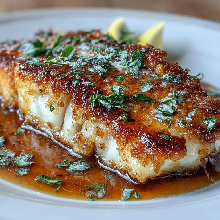 This fish sings next to something simple that won't compete for attention. Steamed green beans with just salt and butter sit prettily on the plate, or roasted potatoes if you want something more substantial. A crisp white wine like Sauvignon Blanc or a mineral Pinot Grigio pairs naturally with the lemon and butter. Some nights I just add a side salad and call it complete.