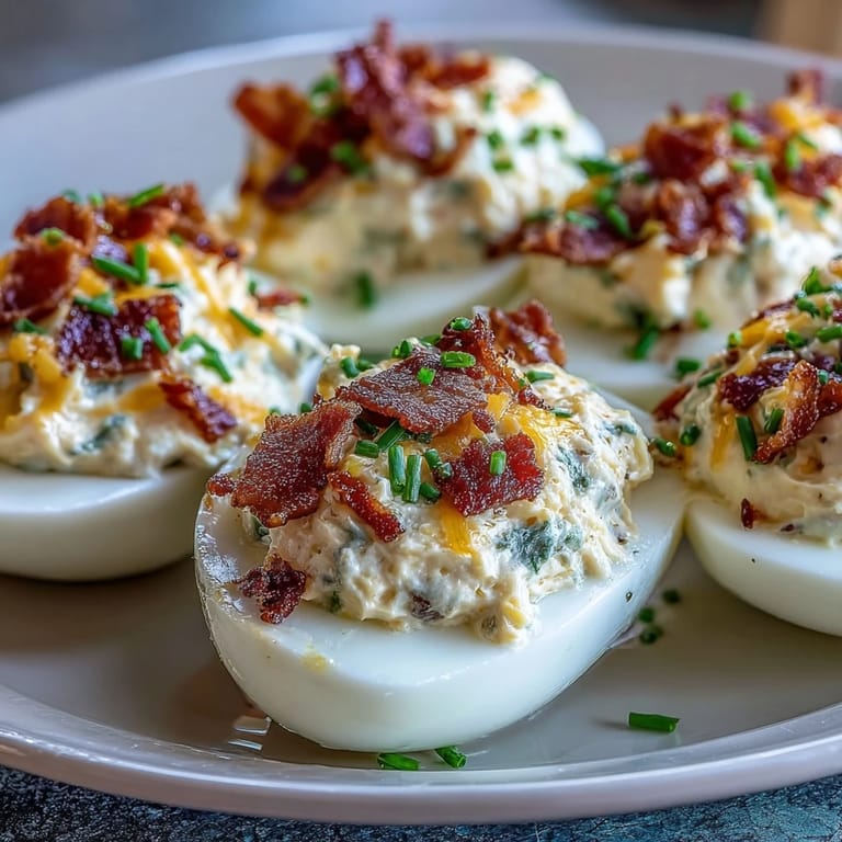 I remember whisking up these deviled eggs for my neighbor's backyard barbecue—the crisp bite of jalapeños made everyone raise an eyebrow (in the best way). There was friendly rivalry over who snagged the last piece, and a running joke that I might need to make a whole tray just for the bacon lovers. It ended with a few requests for the recipe and the promise of a repeat next time.