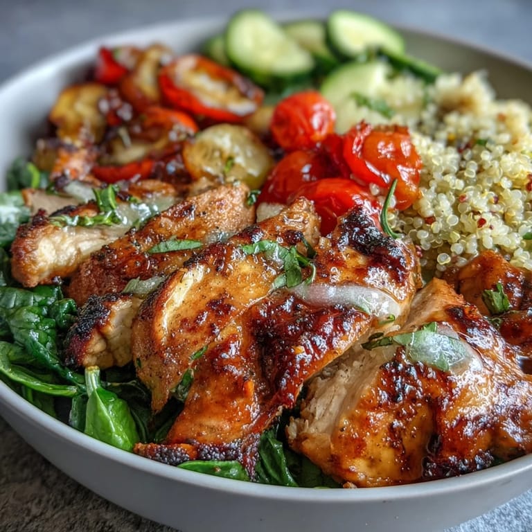 Save to Pinterest My neighbor stopped by one afternoon with her hands full of farmers market bags, and without thinking twice, I fired up the grill to create something we could both enjoy in the shade. That spontaneous lunch turned into this bowl—colorful, bright, and so easy that we were eating within forty minutes. The real revelation wasn't the chicken or the vegetables, but how a good lemon vinaigrette could pull everything together into something that felt both light and completely satisfying. Since then, I've made it dozens of times, sometimes with whatever proteins or greens I have on hand. It's become my go-to when I want something healthy that doesn't feel like a chore.
