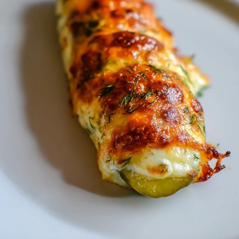Save to Pinterest My sister texted me a photo of melted cheese pickle rolls at some gastropub, and I couldn't stop thinking about them. Three days later, I was standing in my kitchen at 6 p.m., a block of cheddar in one hand and a jar of pickles in the other, convinced I could recreate the magic. The first batch burned slightly—I was too eager—but by roll number four, something clicked: the cheese bubbled golden, the pickle stayed crispy, and everything came together in about thirty seconds. That's when I knew this snack was dangerous in the best way.