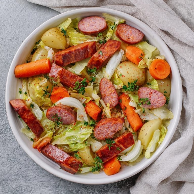 Save to Pinterest I threw this together on a Tuesday night when the fridge looked bare and I was too tired to think. A pack of sausages, half a cabbage wilting in the crisper, some potatoes rolling around—it didn't look like much. But forty-five minutes later, the kitchen smelled like a German beer hall, and my husband looked up from his plate and asked if we could eat like this every week. Sometimes the best meals are the ones you don't plan.